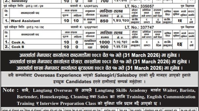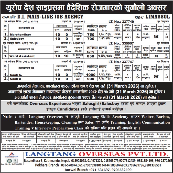 • Recruitment Agency: Langtang Overseas Pvt. Ltd.